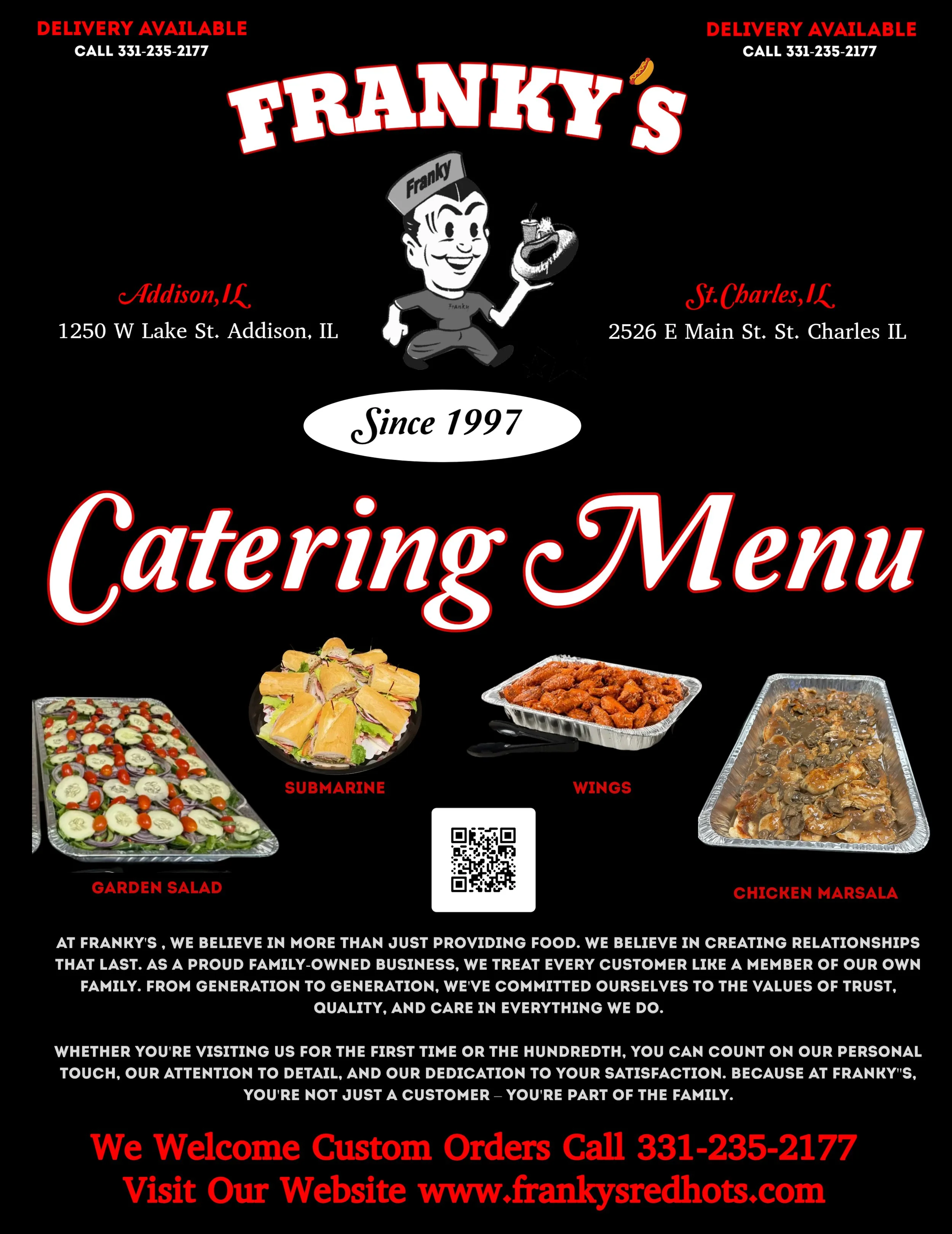At Franky’s , we believe in more than just providing food. We believe in creating relationships that last. As a proud family-owned business, we treat every customer like a member of our own family. From generation to generation, we've committed ourselves to the values of trust, quality, and care in everything we do.